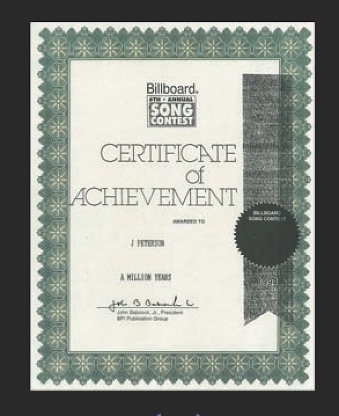 Lyrics JD Peterson/Music Richard Bomberowitch